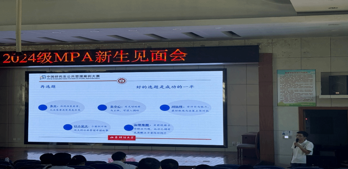 在随后进行的入学教育活动中,永利yl23411副经理段宇波围绕MPA研究生人才培养方案进行了解读。他详细介绍了永利yl23411MPA学位的基本情况、课程设置和团队力量,对2024级MPA新生的基本情况做出了简要说明。围绕导师遴选和沟通技巧、论文开题答辩相关要求等同学们目前最关心的问题进行了梳理。永利yl23411案例中心主任靳永广老师介绍中国研究生公共管理案例大赛的相关信息,如赛程设置、比赛周期和案例写作要求等,并对近期工作做出了安排。