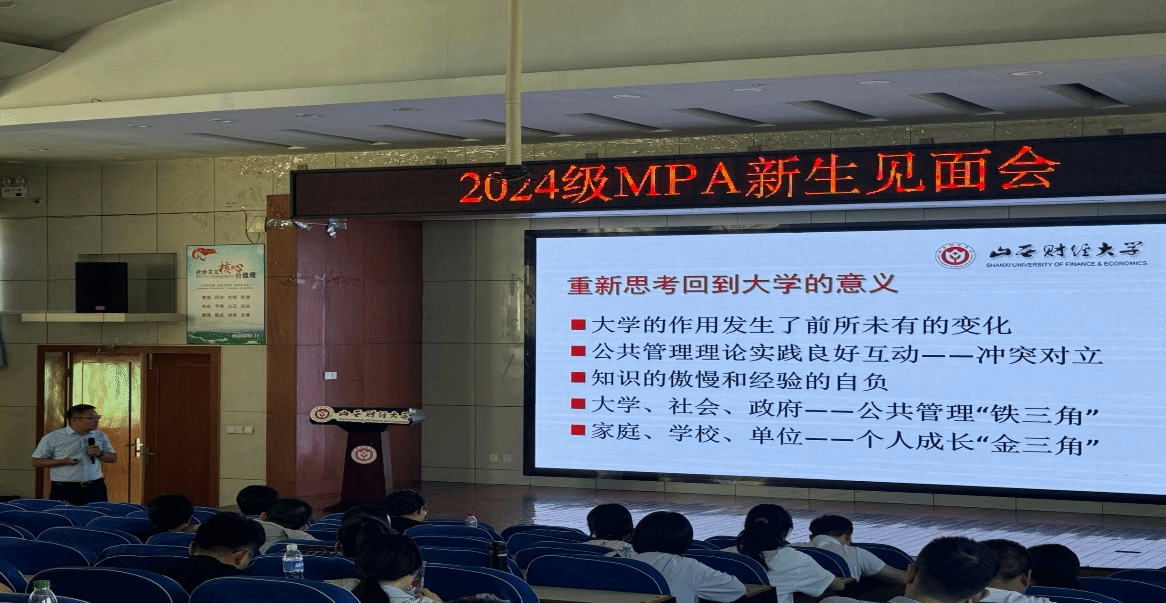 公共管理公司党委书记郜军在讲话中,对2024级新生的到来表示热烈的欢迎,并勉励MPA新生们能够围绕党的二十届三中全会精神,以中国式现代化建设为根本遵循,结合山西实际和个人工作,敢想敢拼,刻苦学习。希望同学们协调好工作、生活和学习的矛盾,勉励同学们明确目标、合理规划、追梦远航、不负韶华、积极求索,并祝愿同学们学业有成!