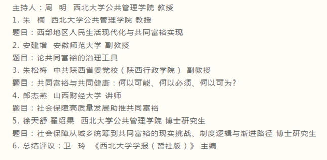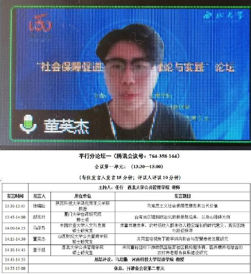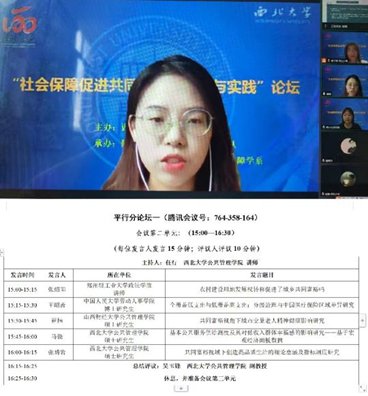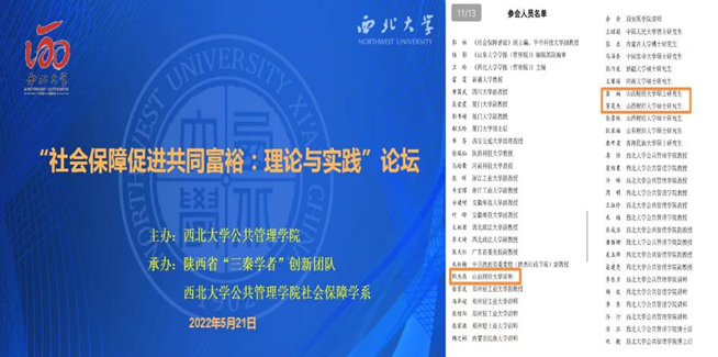 2022年5月21日,由西北大学永利yl23411主办、陕西省“三秦学者”创新团队和西北大学永利yl23411社会保障学系承办的“社会保障促进共同富裕:理论与实践”座谈会以线上线下相结合的形式举办。由于疫情原因,公司讲师朗杰燕、2020级社会保障专业研究生崔楠、董英杰应邀线上参会并发言。