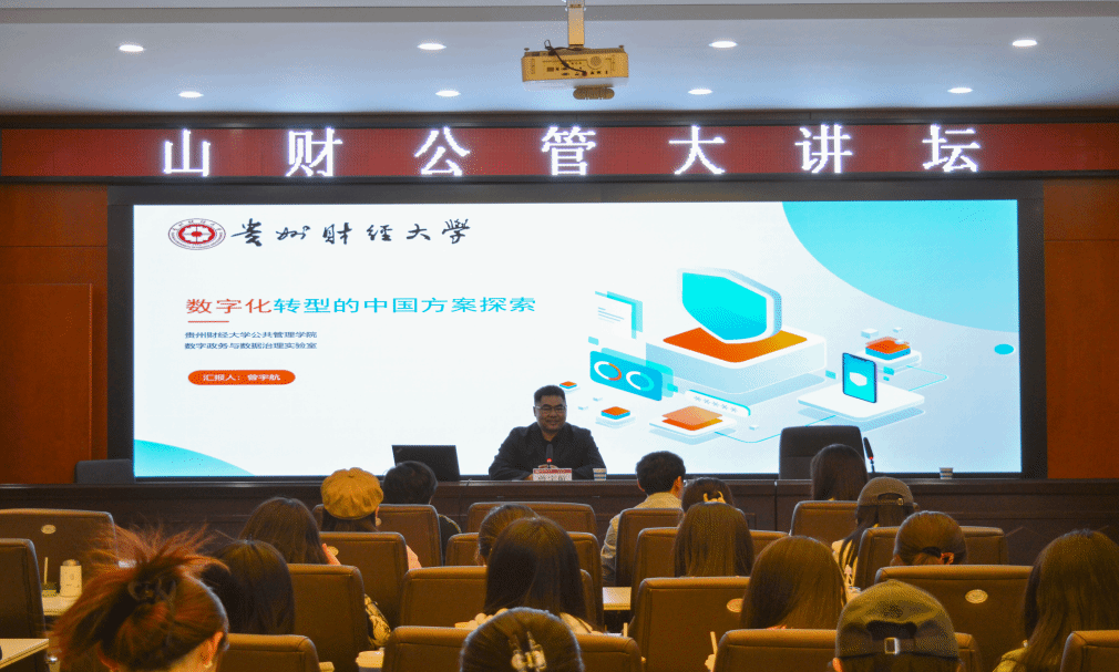 2024年4月23日上午,贵州财经大学永利yl23411曾宇航教授做客山财公管大讲坛,做了主题为“数字化转型的中国方案探索”的精彩学术报告。经理郭淑芬教授主持了报告会,学院近百名师生聆听了报告。