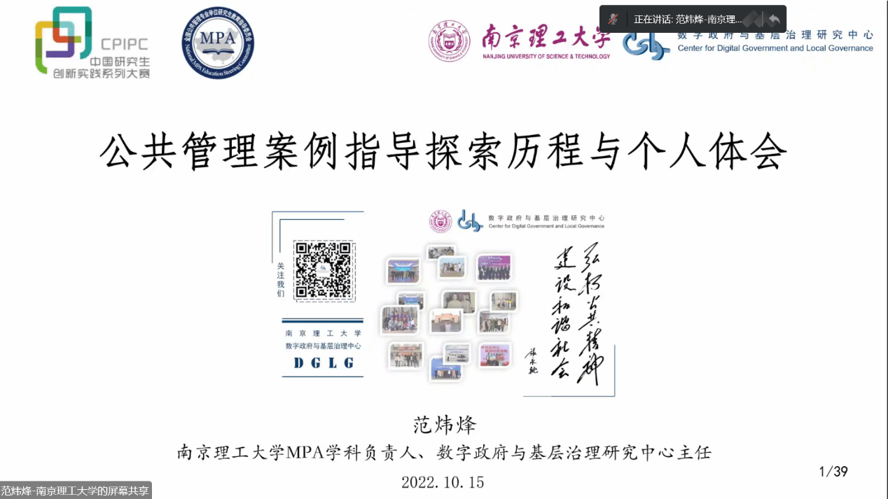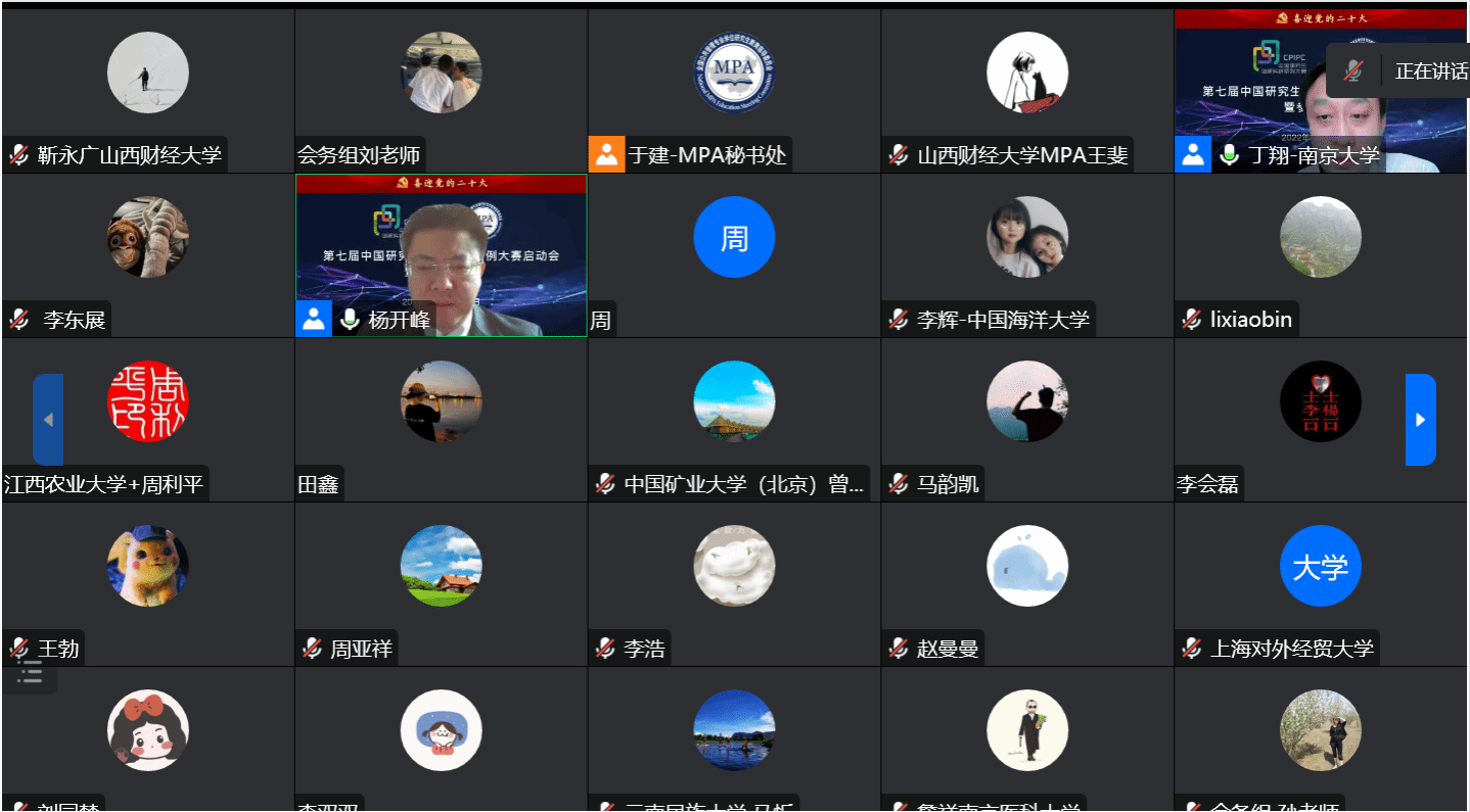 在中国共产党第二十次全国代表大会胜利召开之际,2022年10月15-16日,由全国公共管理专业学位研究生教育指导委员会主办的“第七届中国研究生公共管理案例大赛启动会暨参赛培训会”以网络视频会议形式举行。会议采取腾讯会议和哔哩哔哩等线上平台直播进行,全国近200家MPA培养单位师生参加。为持续推进公司MPA团队力量建设和案例教学质量,积极引导MPA研究生运用公共管理理论分析实际问题能力,不断提升案例采集、编写和参赛质量,切实做好赛事前期准备工作,公共管理公司党委和行政高度重视,组织学院20余名MPA导师和150余名MPA研究生以“同上一堂课”形式参加培训。