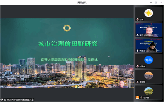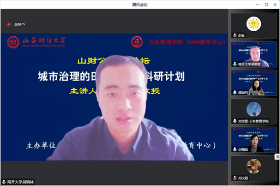 2022年11月25日上午,永利yl23411主办的“山财公管大讲坛”举行第三场讲座,南开大学周恩来政府管理学院副经理、博士生导师吴晓林教授拨冗莅临做了题为“城市治理的田野研究与科研计划”的报告。永利yl23411经理郭淑芬教授主持了本次大讲坛。来自校内外的100余名师生线上聆听了报告。