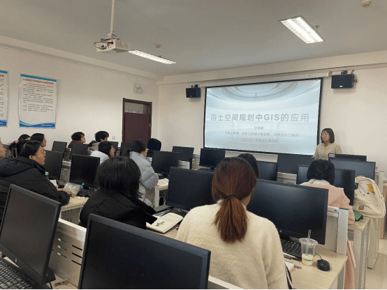刘李霞主任结合自身在国土空间规划领域的丰富经验,介绍了国土空间规划体系改革的背景,并以市国土空间规划编制为例,详细介绍了规划编制工作流程,并通过ArcGIS软件的实操演示,向同学们展示了GIS在国土空间规划中的应用场景。她强调GIS不仅是技术工具,更是一种思维和工作方式,鼓励员工要重视理论学习,通过理论学习与实践运用相结合,才能使自己的职业生涯走得更远。课程结束后,刘主任围绕员工实践、企业招聘等方面与员工进行了热情交流与互动。