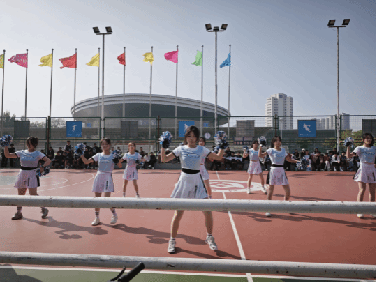 决赛中,队员们展现了出色的技巧,体现出顽强的拼搏精神。每一个跳跃、每一次旋转、每一个微笑都凝聚着勤奋的汗水。队员们尽情释放活力,即便汗水湿透衣衫,也依然全力以赴。那整齐划一的动作,是她们无数次排练的成果。现场观众们被队员们的精彩表现深深吸引,欢呼声、掌声此起彼伏,整个赛场沉浸在热烈的氛围中。