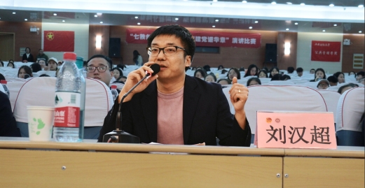 刘汉超老师对本次比赛作出精彩点评。他从内容、形式和心态三方面指出:演讲内容紧扣主题,把党史与当代老员工的学习生活实际紧紧结合;演讲形式丰富多元,注重提升表现力和感染力;选手心态平和,情绪激昂,充分展现了青年学子的精神风貌。