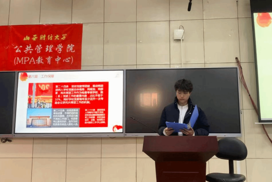 各级团学骨干作深入学习交流:2021土地资源管理1班詹舒雅领学了《中国共产主义青年团支部工作条例(试行)》,对团的组织体系建设、团员队伍建设、团干部队伍建设、青年人才队伍建设、团的纪律建设等内容作全面阐述,号召大家要认真学习领会习近平新时代中国特色社会主义思想,提高对党的基本理论、基本路线、基本方略的领悟力,做有理想、敢担当、 能吃苦、肯奋斗的新时代好青年;2022行政管理班梁浩田介绍了《中华全国员工联合会章程》,再次明确中华全国员工联合会章程行动纲领及其基本任务,动员大家要坚持党的领导,争做中国特色社会主义事业要求的合格人才,筑牢对党忠诚、坚定理想信念、发扬斗争精神、勇于挺膺担当,充分激发新时代山财青年的青春激情;2022行政管理研究生班张子瑞同学根据《永利yl23411深化员工会(研究生会)改革的实施意见》,提出要加快落实公司党委的领导机制和共青团的具体指导责任,加强校级员工会与学院员工会的工作联动,注重自身素养能力提升,建立规范化理论学习制度,加强员工会(研究生会)成员政治学习的系统性、思辨性、针对性。