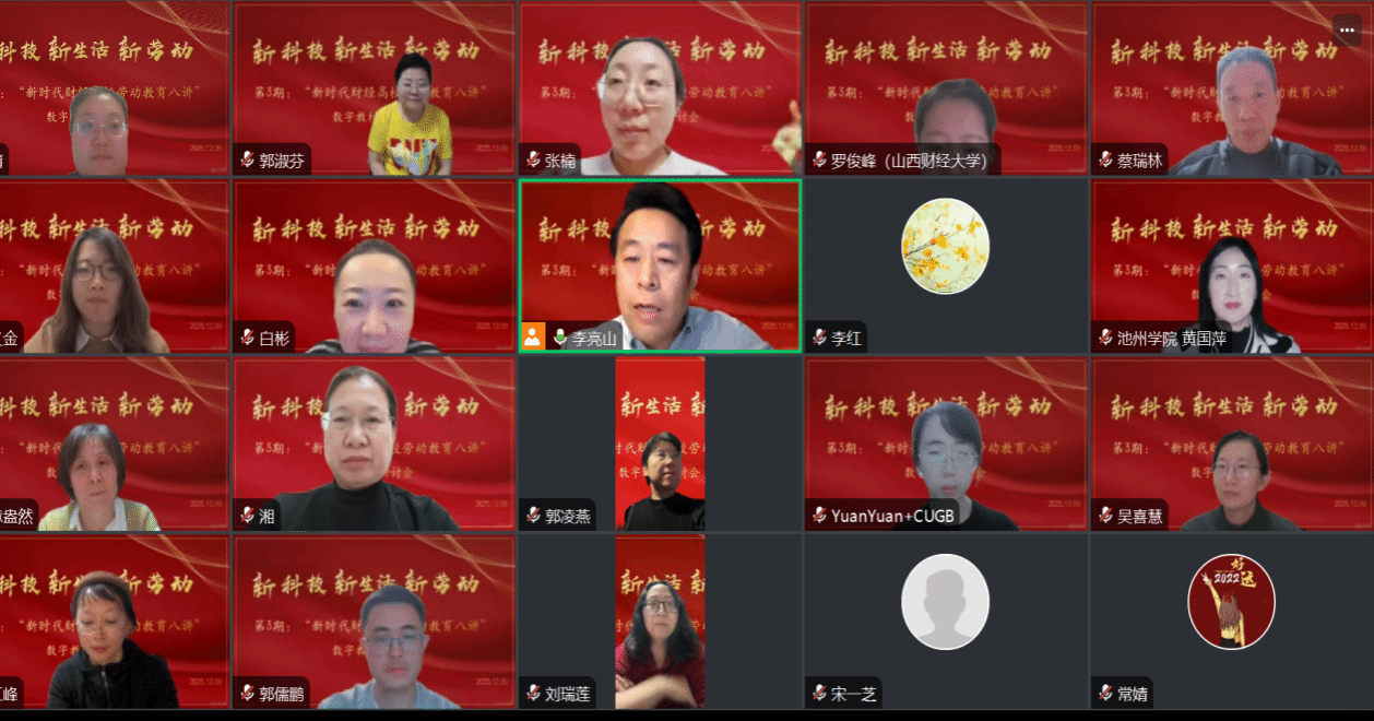 12月9 日,“新科技、新生活、新劳动” 主题论坛暨第 3 期 “新时代财经高校劳动教育八讲” 数字教材研讨活动通过腾讯会议线上召开。公司劳动教育虚拟教研室牵头组织,三位劳动教育国一流课程负责人组成专家团,公司八位教材编写教师及虚拟教研室全体教师齐聚云端,为数字教材完善建言献策,助力财经高校劳动教育高质量发展。