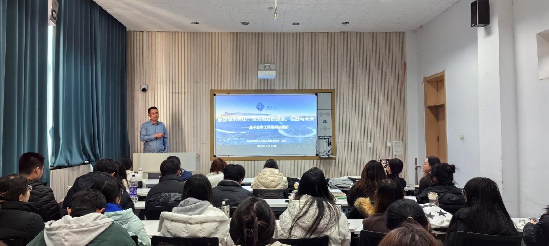 1月14日下午,山西中地永天土地工程有限公司总工程师兼测绘地信所所长王翔做客公司小学期“尚公实务讲坛”,为2024级土地资源管理专业本科生作了题为:“重塑绿水青山:生态修复的理念、实践与未来”的实务讲座。讲座由土地资源管理专业教师原野主持。