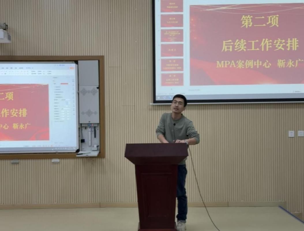 随后,MPA案例中心执行主任靳永广就后续案例完善、推荐参赛等工作进行了具体部署。他明确了案例完善的时间节点与优化方向,要求各团队结合评审意见打磨案例的问题聚焦度、方案可行性与实践创新性,并在截止日期前提交终稿。学院将同步且持续提供资深老师指导,助力作品提质升级。