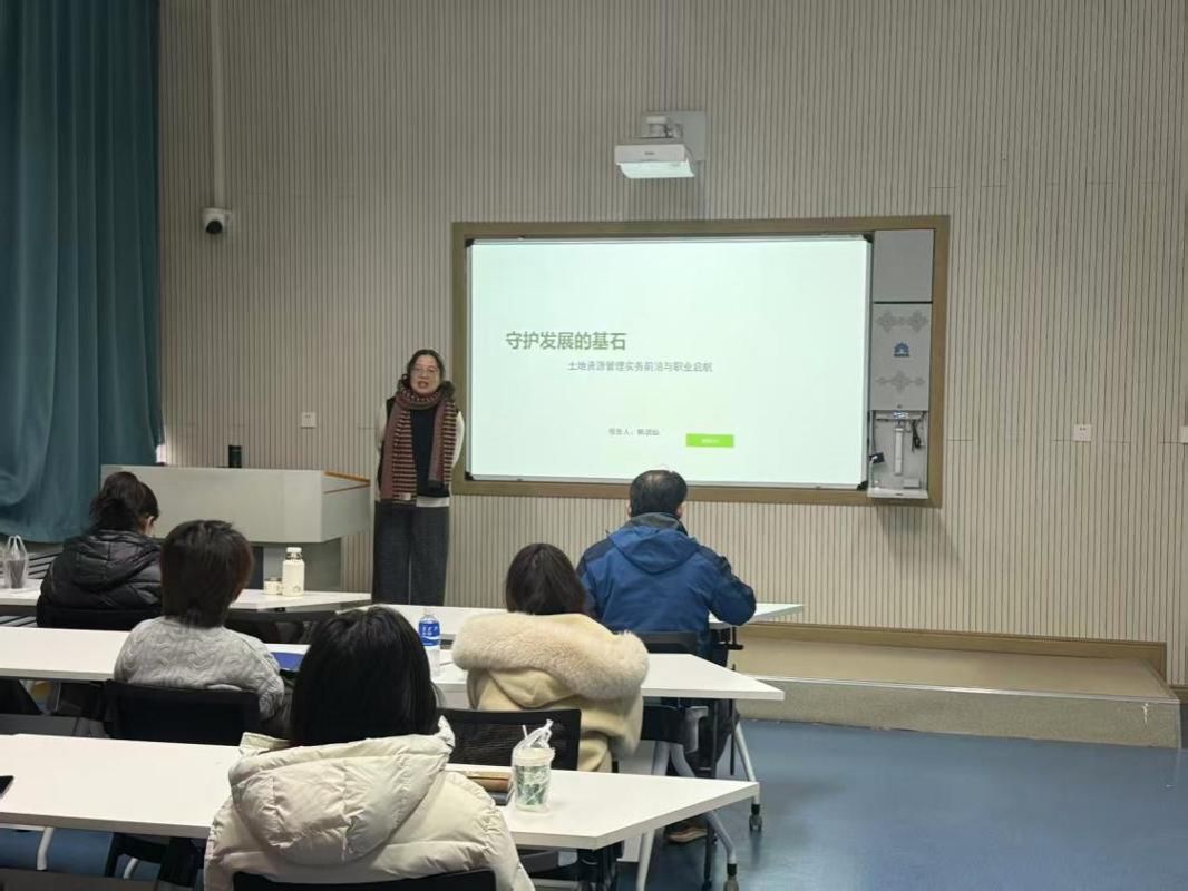 为了培养员工专业综合素养,提升员工专业实践能力,2026年1月14日上午,永利yl23411“小学期”实践能力培养活动-“尚公实务讲坛”在修德楼204教室顺利开展。本次论坛以“山西省国土空间规划实务”为主题,特邀请山西省国土调查规划中心韩润仙主任为2023级土地资源管理专业员工开展“守护发展的基石-土地资源管理实务前沿与职业启航”论坛活动。本次论坛由王瑞雪教授主持。