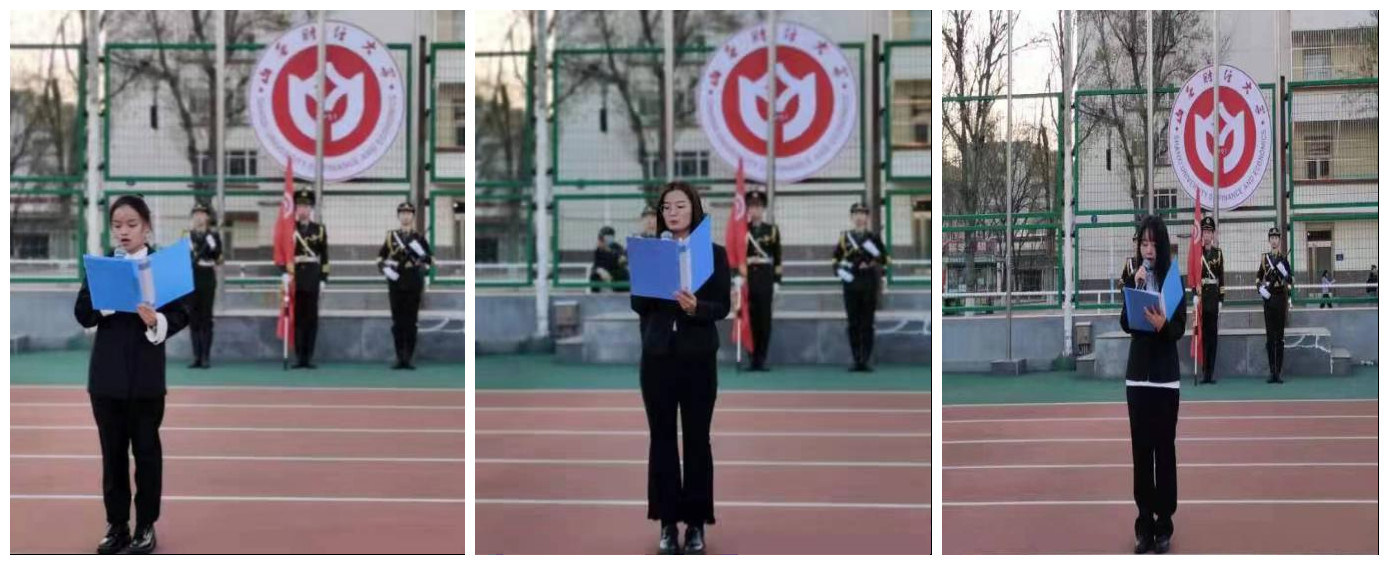 2019级土地资源管理1班郑昭宇、2019级土地资源管理2班王裕博、2019级行政管理班王静璇、2019级劳动与社会保障班宋颂等4名同学以诗朗诵《百年波澜壮阔,初心历久弥坚》,献礼建党100周年:伟大的旗帜、伟大的党,红日光芒照耀四方;伟大的国家,伟大的民族,巍然屹立世界东方。