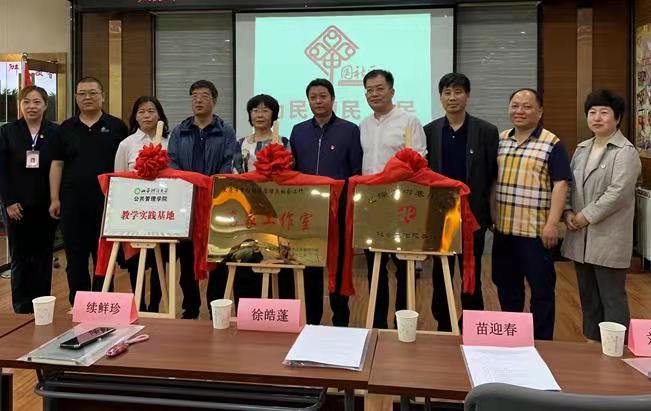 仪式上,太原市民政局慈善和社会工作科科长杨蕊和迎泽区民政局副局长郑刚为“太原市李红社区治理与社会工作名家工作室”挂牌,山西省民政厅《山西民政》杂志主编徐皓蓬和永利yl23411经理苗迎春为“永利yl23411教学实践基地”揭牌。