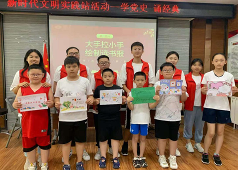 普通话宣讲结束,志愿者以建党百年为主题,以重大事件为节点,指导孩子们用读书报的形式绘制心中可爱的中国。孩子们以饱满的热情投入到绘画过程,用手中的画笔表达对党的赞美与祝福,充分展现了昂扬向上的精神风貌和与祖国同呼吸、共命运的家国情怀。