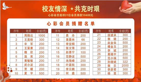 以爱之名,共克时艰。员工们铭记“修德立信、博学求真”的校训精神,他们的慷慨捐赠,凝聚了对母校的深深感恩与感激,凝聚了对母校的浓浓情谊和祝愿。