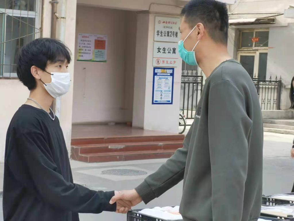 下午四时,捐赠物资准时送抵迎泽校区西门口,永利yl23411迎泽校区现场辅导员张凯老师代表学院向王程同学及家长表示诚挚的感谢。在疫情防控的特殊时期,王程同学能够心怀大爱,关注和关心着同学们的生活,是对学院的信任,对学校防控工作的支持,我们有信心家校合力,共克时艰!