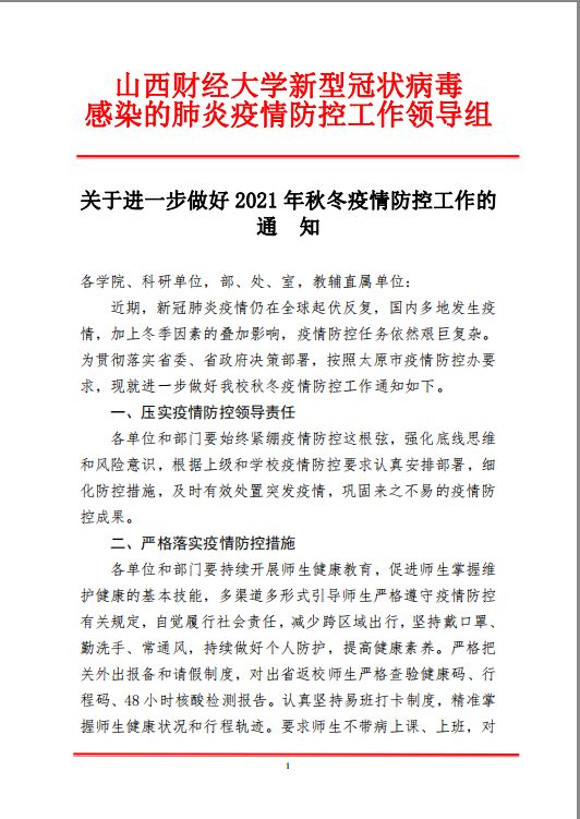 关于进一步做好2021年秋冬疫情防控工作的通知