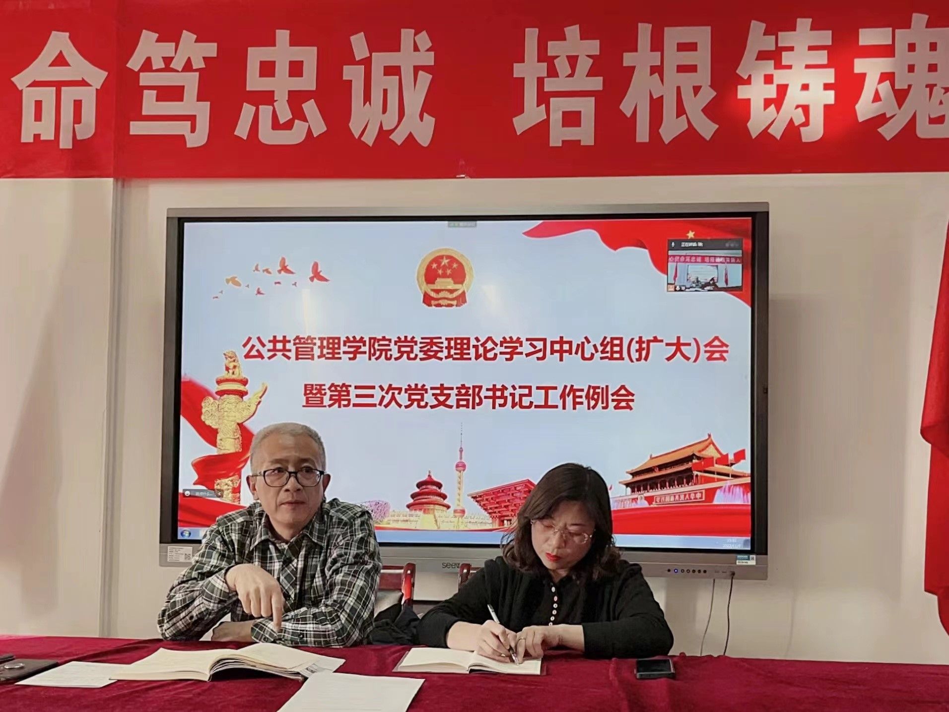 郜军老师带领全体与会人员共同学习交流了党的二十大精神。他指出,永利yl23411师生学习宣传贯彻党的二十大精神,意义特别。党的二十大报告是治国方略,理应成为我们专业必修课,人才培养第一大课。他强调,党的二十大绘就了全面建成社会主义现代化强国、实现第二个百年奋斗目标、以中国式现代化全面推进中华民族伟大复兴宏伟蓝图,在推进国家治理体系和治理能力现代化进程中,公共管理学科发展迎来了春天,为全体公管人提供了广阔的用武之地。全院师生要自觉上好这一大课,坚持不懈用习近平新时代中国特色社会主义思想和党的二十大精神凝心铸魂,武装头脑,指导实践、推动工作,练就真本领,作出新业绩。他用三句话与大家交流了学习体会,一是“三个不变”,党的自我革命确保党不变质、不变色、不变味,找到了跳出治乱兴衰历史周期率的第二个答案;二是“三个气”,新时代十年伟大变革增强全体中华儿女志气、骨气、底气,“四个意识”更加牢固,“四个自信”更加坚定,“两个维护”更加自觉;三是“三个不”,战胜前进道路上各种困难和挑战锤炼不信邪、不怕鬼、不怕压品格,发扬斗争精神,打开事业发展新天地。他着重讲解了中国式现代化的深刻内涵和战略部署,引导师生深刻把握中国式现代化的本质要求和重要特征,坚定不移以中国式现代化全面推进中华民族伟大复兴。