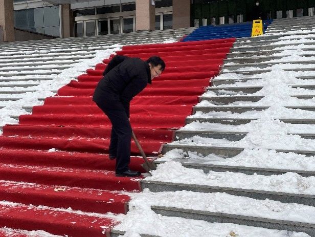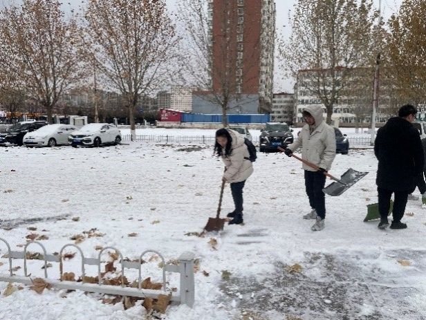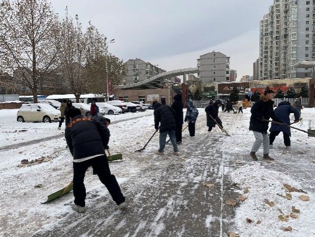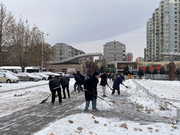 下午两点,大家齐聚立信楼门口阶梯,用除雪工具将台阶上和路面上的积雪清理得干干净净,为公司师生开辟出一条条安全的路径。在此过程中,同志们满怀热情,自由组合,齐心协力,充满干劲,以极高的效率出色地完成了除雪任务。在热火朝天的劳动中,大家不畏严寒,奋勇向前,争当先锋模范的带头兵,在深耕奉献精神的过程中,充分发挥中国共产党乐于奉献、服务群众的优良传统,发扬党全心全意为人民服务的宗旨。