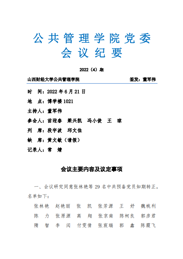 公共管理公司党委会议纪要 2022(4)期