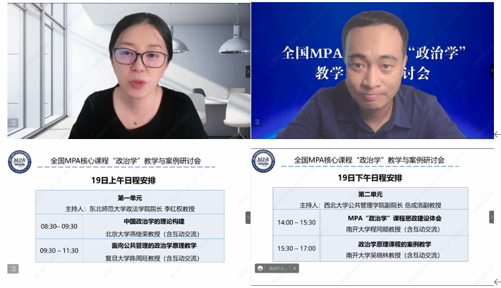 为学习贯彻落实党的二十大精神,进一步优化并改进MPA核心课程教学内容和方法,探讨学科最新研究动态,提升课堂教学效果,全国公共管理专业学位研究生教育指导委员会于11月19-20日举办了全国MPA核心课程“政治学”教学与案例研讨会。本次研讨会借助腾讯会议平台进行,全国近百家MPA培养单位、160余位任课教师参加。公司刘汉超、靳永广两位教师参会。